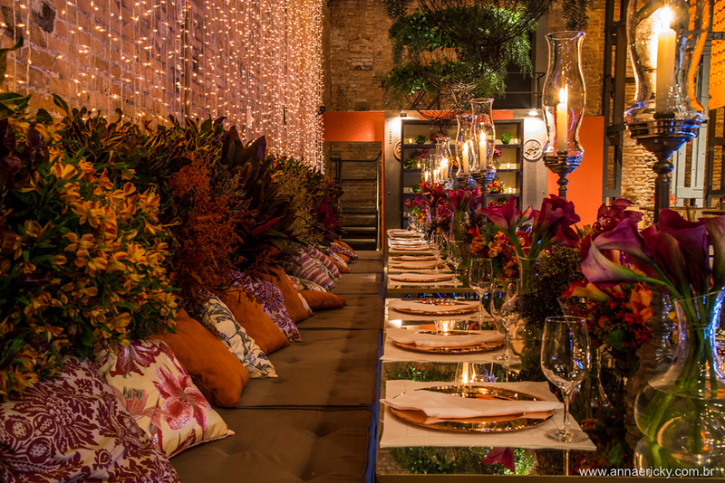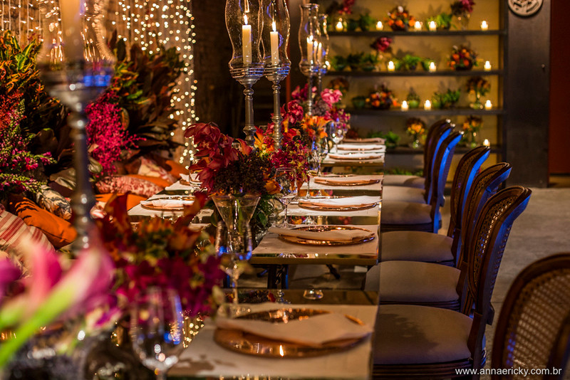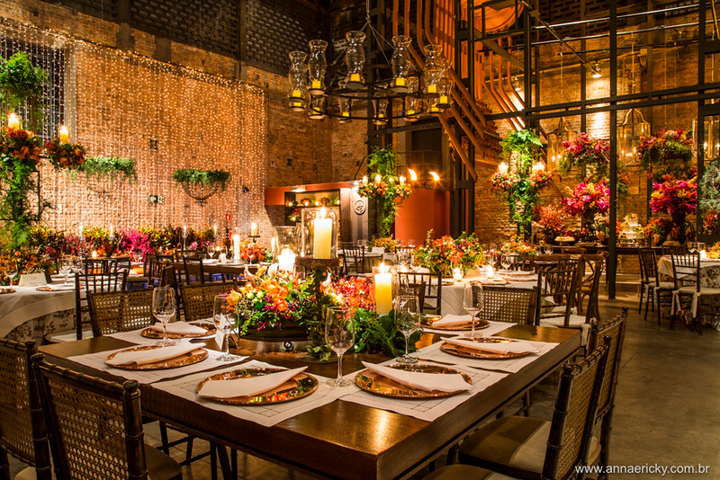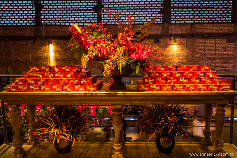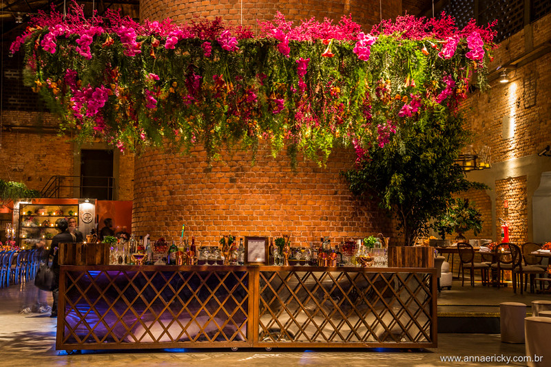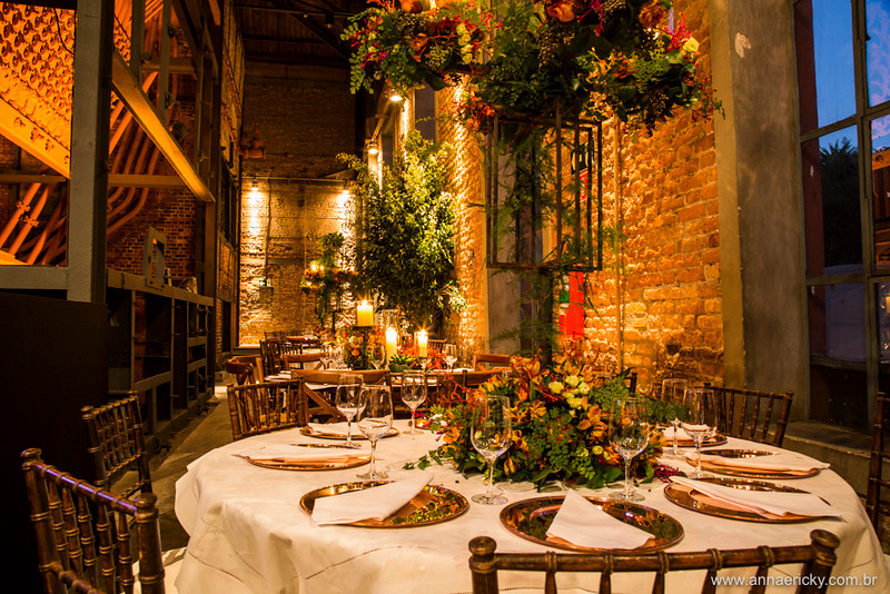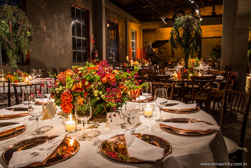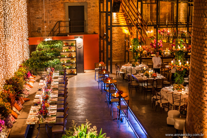 O local escolhido para a festa de casamento foi a Casa das Caldeiras - uma construção fabril de alvenaria de tijolos, construída na década de 1920 - a decoração foi feita pela decoradora Adriana Malouf que escolheu os tons terrosos e um toque de pink para aquecer o ambiente.